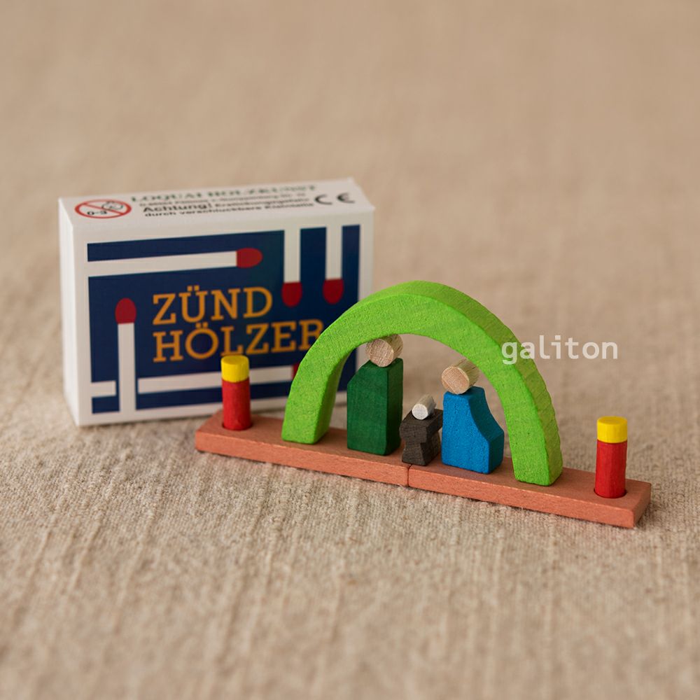 マッチ箱に入ったパーツを組み立てるとキリスト聖誕のシーンをあらわしたシュヴィップボーゲン風の飾りになります。