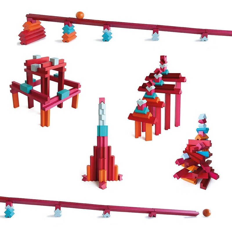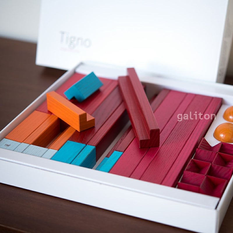 商品名の《Tigno》は「建設用木材」を意味するラテン語「tignum」に由来しており、細長いパーツはまさに建築物の柱梁をイメージさせるものです。