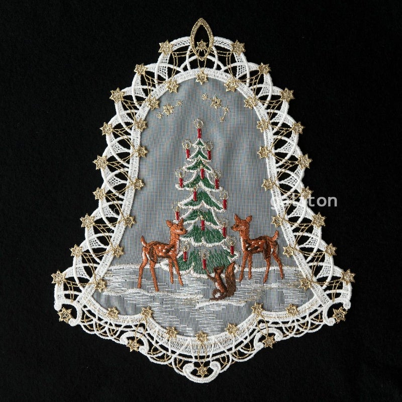 張りのあるレースでできたクリスマスオーナメントです。刺繍やレースの産地として世界的に有名なドイツ・プラウエンの街で作られています。