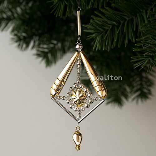 ガラス製のオーナメントです。伝統的な型吹きガラスの製法で作られた非常に薄くて軽いビーズが使用されています。チェコ製。