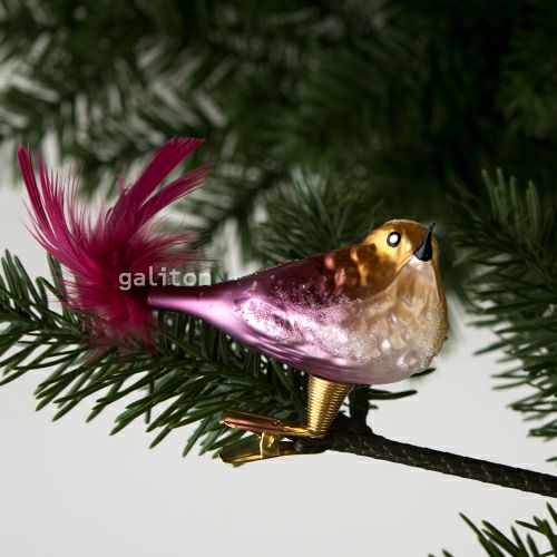 【xmas限定販売】 グラスオーナメント ふくら鳥 ボルドー/金 A0461