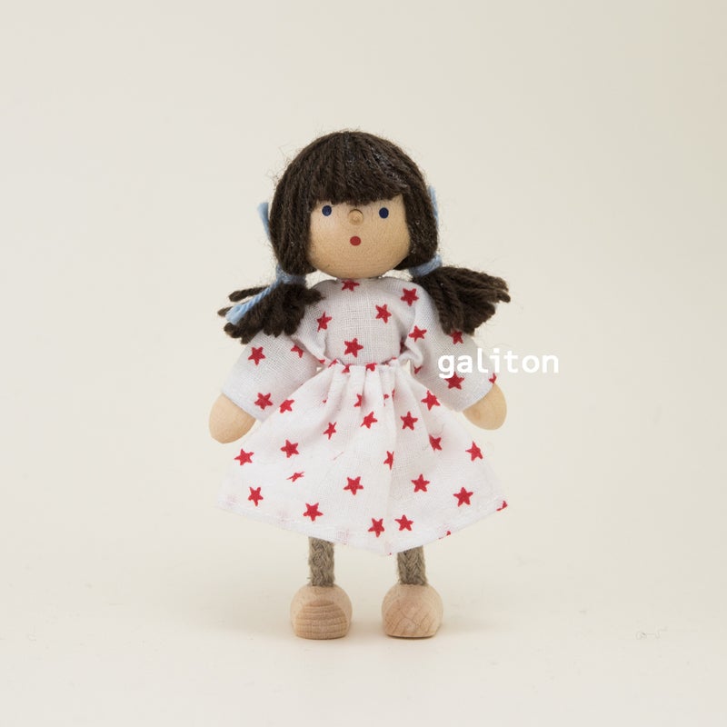 ヘアビック Herwig ドールハウス用人形 女の子 星柄白上下服
