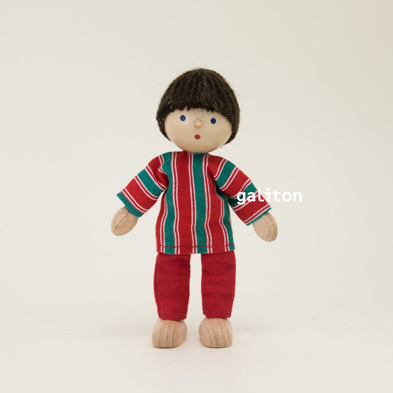 ヘアビック Herwig ドールハウス用人形 男の子 赤緑シマ服+赤パンツ