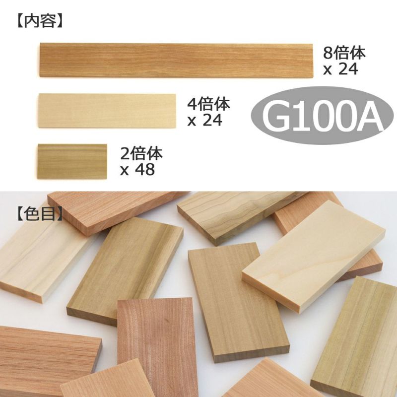 木製(ポプラ、イエローバーチ)、W45xD7.5mm、8倍体(L36mm):24枚、4倍体(L180):24枚、2倍体(90mm):48枚、正六角形板:3枚