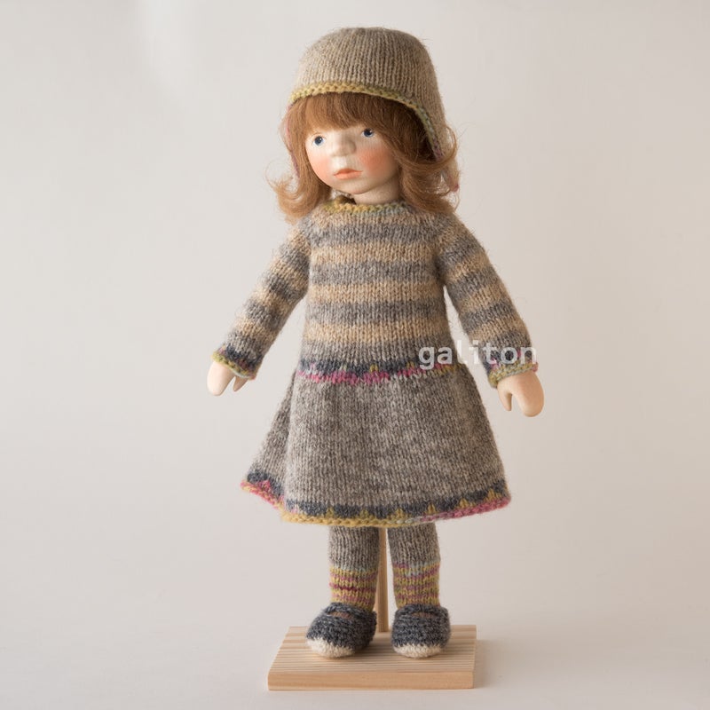 Elisabeth Pongratz ポングラッツ人形 オールウッド H420 グレー縞ニットワンピース